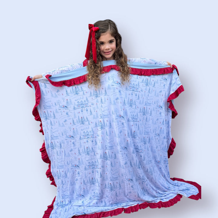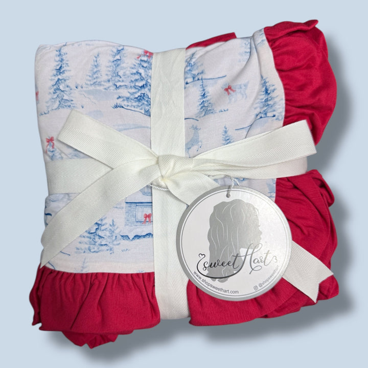 Holiday Toile Ruffled Lush Triple Layered Blanket