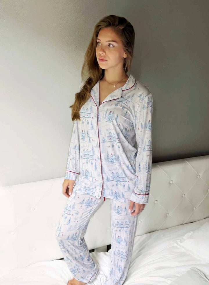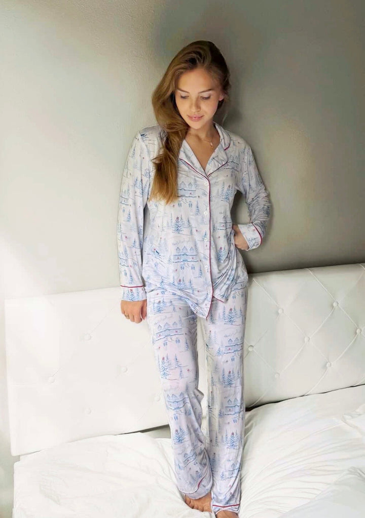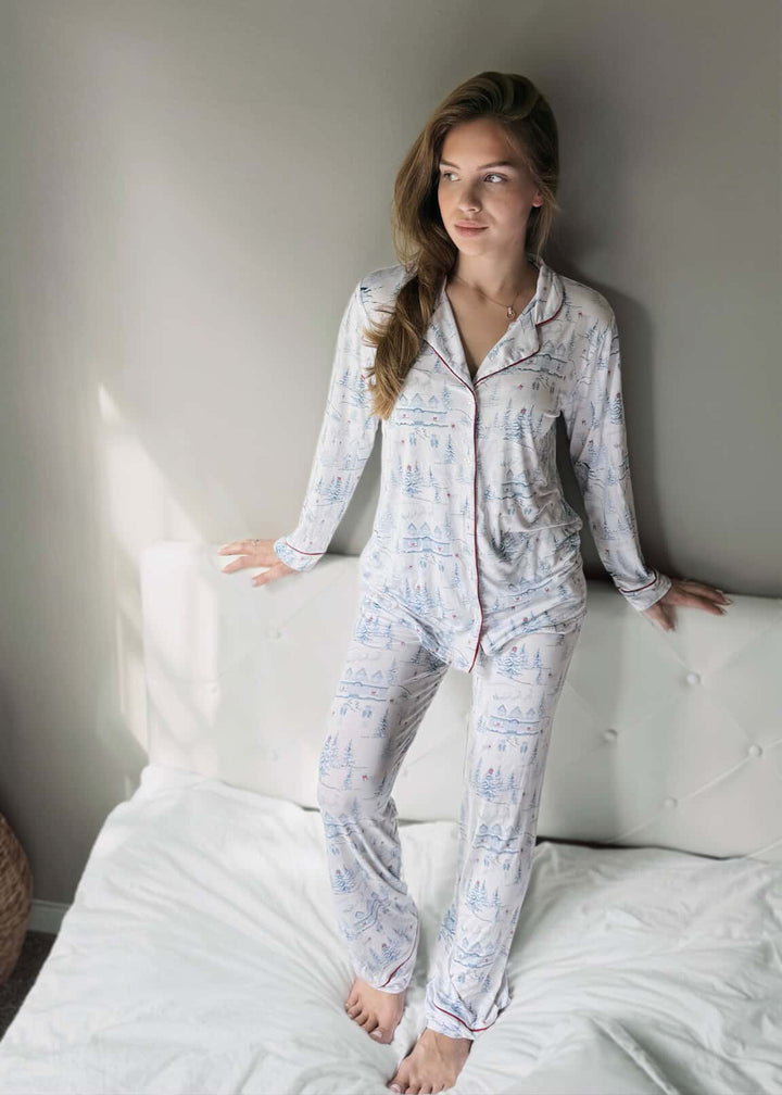 Sleep in heaven in stretchy, buttery soft, breathable, bamboo fabric. Bamboo is the best fabric for sleeping and for sensitive skin. And let’s be honest, these will be worn longer and more than just for sleeping! We searched high and low for the highest quality, softest, most buttery feeling fabric there is. These fabric designs are exclusively by us and for us and only found here. Matching Holiday Toile for Mommy & Me!